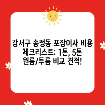 Meta Description: 강서구 송정동 포장이사 가격과 1톤, 5톤 원룸, 투룸 이사 비용을 체크리스트와 함께 무료 비교 견적받는 방법을 알아보세요.