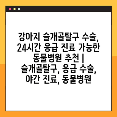 강아지 슬개골탈구 수술, 24시간 응급 진료 가능한 동물병원 추천 | 슬개골탈구, 응급 수술, 야간 진료, 동물병원 에 대해 자주 묻는 질문 TOP 5