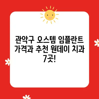 관악구에서 임플란트를 고려하는 분들을 위해 추천하는 치과 Top 7을 정리했습니다. 각 치과는 오스템과 원데이 시술에 전문성을 가지고 있으며, 많은 환자들로부터 긍정적인 평가를 받고 있습니다.