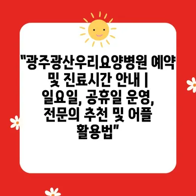광주광산우리요양병원 예약 및 진료시간 공지 | 일요일, 공휴일 운영, 전연락 추천 및 어플 활용법