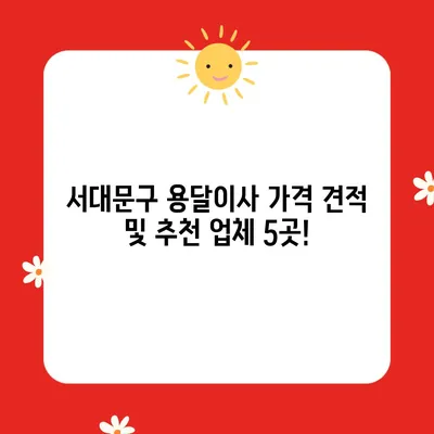 💡 서대문구 용달이사 비용을 꼼꼼히 비교해 보세요! 💡