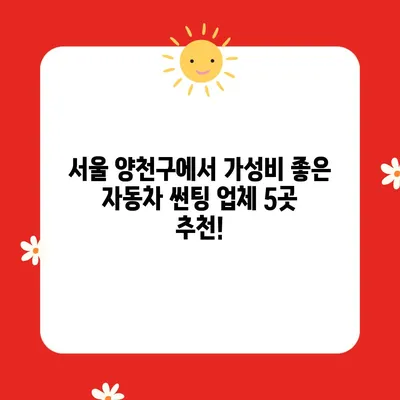 서울특별시 양천구에서 자동차 썬팅을 잘하는 곳을 찾고 계신가요? 여름철이 다가오면서 열차단의 중요성을 느끼는 분들이 많습니다. 이 글에서는 서울특별시 양천구에서 가성비가 뛰어난 자동차 썬팅 업체 다섯 곳을 추천해 드리겠습니다. 특히, 필름의 브랜드와 썬팅 농도, 그리고 업체 선택 시 고려해야 할 다양한 요소들을 상세히 설명드릴 것입니다.