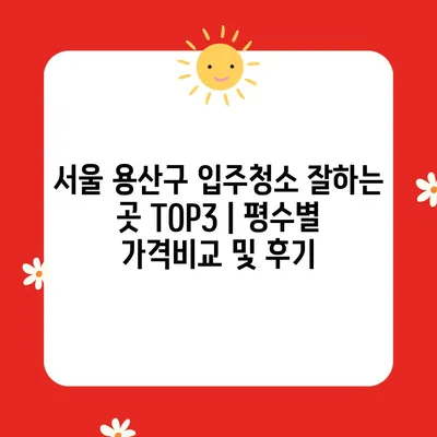 서울특별시 용산구에서 추천할 만한 입주청소 업체 TOP3를 선정해봤습니다. 각 업체의 장점과 서비스를 살펴보며 여러분의 선택에 도움을 드리고자 합니다.
