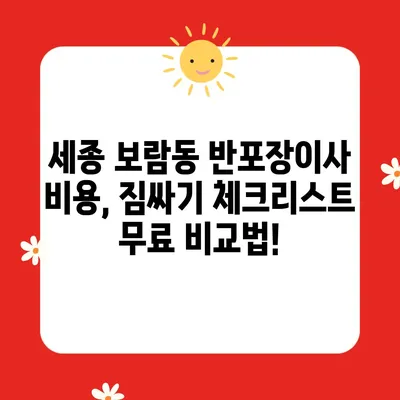 💡 세종 보람동 반포장이사 비용을 간편하게 비교해 보세요! 💡