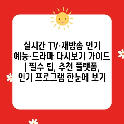 실시간 TV·재방송 인기 예능·드라마 다시보기 가이드 | 필수 팁, 추천 플랫폼, 인기 프로그램 한눈에 보기