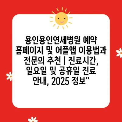 용인용인연세병원 예약 홈페이지 및 어플앱 이용법과 전연락 추천 | 진료시간, 일요일 및 공휴일 진료 공지, 2025 정보에 대해 알아보겠습니다.