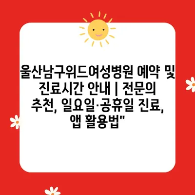 울산남구위드여성병원 예약 및 진료시간 안내 | 전문의 추천, 일요일·공휴일 진료, 앱 활용법”
