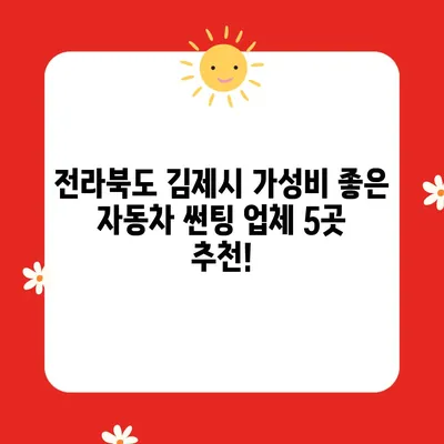많은 업체 중에서도 김제시에서 특히 가성비가 뛰어난 다섯 곳을 추천드립니다. 각 업체는 가격, 서비스, 필름 선택 등 여러 측면에서 다릅니다.