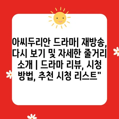 아씨두리안 드라마| 재방송, 다시 보기 및 자세한 줄거리 소개 | 드라마 리뷰, 시청 방법, 추천 시청 리스트 아씨두리안은 매력적인 캐릭터와 흥미진진한 스토리라인으로 시청자들을 사로잡은 인기 … 더보기