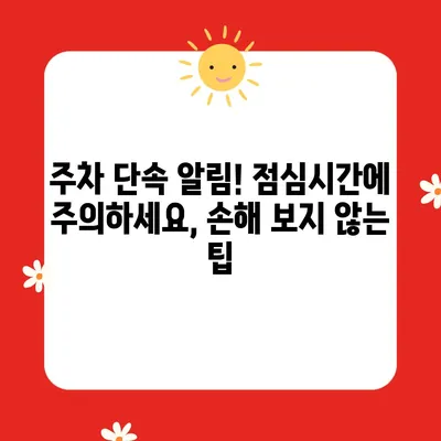 주차단속 알림 점심시간 놓치지 마세요 손해 보지 마세요 Meta Description: 점심시간에 주차단속 알림 서비스를 통해 손해를 보지 마세요. 간단한 신청 절차와 효과적인 관리 방법을 소개합니다. … 더보기