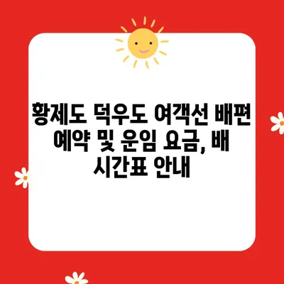 황제도에서 덕우도 배편 예약 가격 여객선 배 시간표 소요시간 운임 요금 황제도에서 덕우도로 가는 배편 예약 방법과 해당 배 시간표 및 운임 요금에 대한 가격 … 더보기
