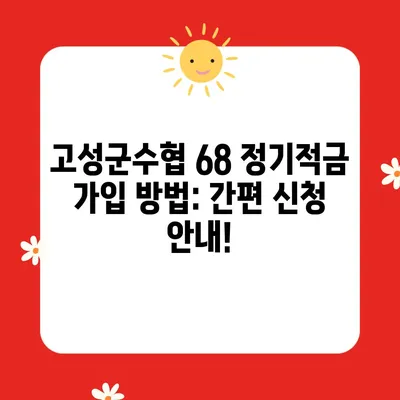 고성군수협 68 정기적금 가입방법과 신청 방법 안내 Meta Description: 고성군수협 68 정기적금의 가입 방법과 신청 방법에 대한 자세한 안내를 제공합니다. 특별한 조건 없이 비대면으로 간편하게 … 더보기