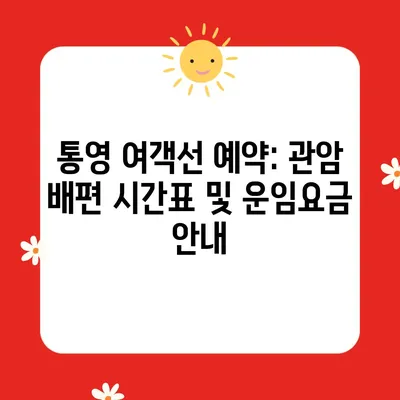 통영 여객선 예약가격 관암 배편 시간표 및 운임요금 안내 통영에서 한산 관암행 여객선 예약 가격과 시간표, 운임 요금 안내를 통해 안전하고 편리한 여행을 준비하세요! 통영 … 더보기