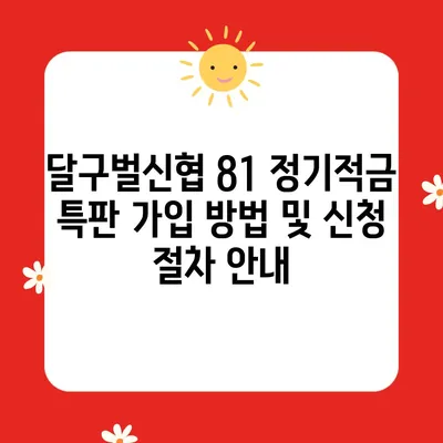 달구벌신협 81 정기적금 특판 가입방법 신청 바로하기 메타 설명 달구벌신협 81 정기적금 특판 가입방법과 신청 절차를 상세히 안내합니다. 고금리의 혜택을 놓치지 마세요! 💡 서울시 소상공인을 … 더보기