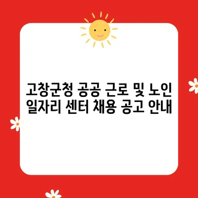 고창군청 공공 근로 및 노인 일자리 센터 채용 공고 안내