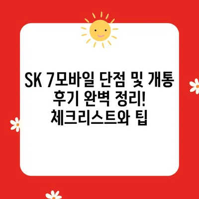 SK 7모바일 단점 개통 후기 등 완벽정리 SK 7모바일의 단점과 개통 후기를 종합하여 상세히 정리했습니다. 통신 서비스 선택에 유용한 정보를 제공합니다. SK 7모바일의 단점 분석 … 더보기