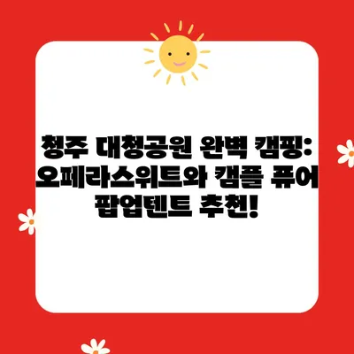 청주 대청공원에서 즐기는 완벽한 캠핑 원터치텐트와 함께하는 패스트캠프 오페라스위트와 캠플 퓨어 팝업텐트 청주 대청공원 캠핑의 매력과 필수 아이템인 원터치텐트, 패스트캠프 오페라스위트 및 캠플 퓨어 팝업텐트를 … 더보기