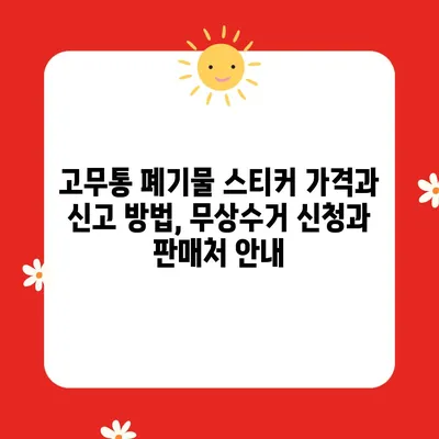 고무통 폐기물 스티커 가격 인터넷 발급 신고 방법 대용량 무상수거 신청 구입처 판매처 고무통 폐기물 스티커 가격과 인터넷 발급 신고 방법에 대한 정보를 상세히 알아보겠습니다. … 더보기