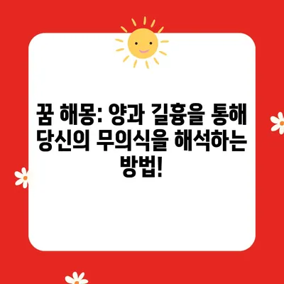 꿈해몽 양과 길 흉몽 당신의 무의식을 해석하는 방법 메타 설명 꿈해몽 양과 길 흉몽에 대한 심층적인 해석을 통해 당신의 무의식을 이해하는 방법을 알아보세요. 꿈과 양의 … 더보기