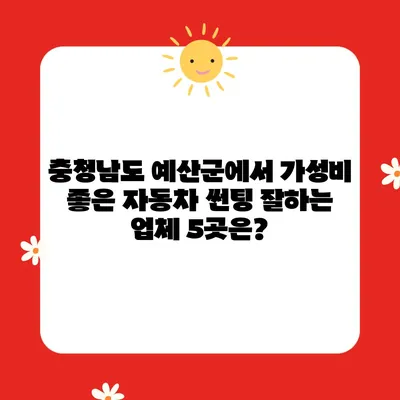 충청남도 예산군자동차썬팅 잘하는 곳은 가성비 업체였던 5곳 추천 메타 설명 충청남도 예산군에서 자동차 썬팅 잘하는 곳을 찾고 계신가요? 가성비 좋은 업체를 추천합니다. 💡 최고의 가성비로 … 더보기