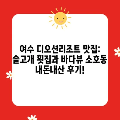 여수 디오션리조트 맛집 여수 솔고개 횟집 소호동 바다뷰 내돈내산 여수 디오션리조트 맛집을 찾다가 발견한 여수 솔고개 횟집은 소호동에 위치한 매력적인 식당입니다. 이곳은 멋진 바다뷰와 함께 … 더보기