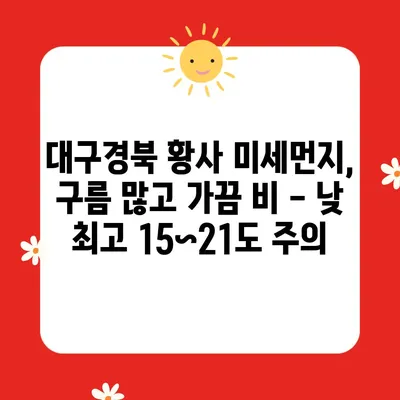 황사 미세먼지 대구경북 구름 많고 가끔 비 낮 최고 15~21도 황사 주의 대구경북 지역은 최근 황사 미세먼지로 인해 건강과 환경에 큰 영향을 받고 있습니다. 특히, … 더보기