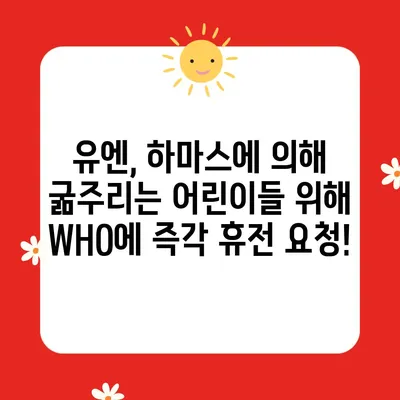 유엔 하마스 굶는 어린이들 WHO가 즉각 휴전을 요청합니다 유엔과 WHO는 하마스 지배 하의 가자지구에서 굶주리는 어린이들을 위한 즉각적인 휴전을 요청하며, 심각한 인도적 위기를 강조합니다. 현재 … 더보기