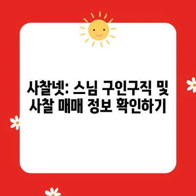 사찰넷 바로가기스님 구인구직 사찰 매매 Meta Description: 사찰넷은 구인구직과 사찰 매매를 위한 신뢰할 수 있는 플랫폼입니다. 불교 용품 구매와 수행 정보도 제공합니다. 사찰넷 이란? 사찰넷은 … 더보기