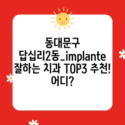 서울특별시 동대문구 답십리2동임플란트 잘하는 치과는 어디 TOP3 추천 서울특별시 동대문구 답십리2동에서 임플란트를 잘하는 치과를 찾고 계신가요? 여기서는 높은 수술 실력과 좋은 리뷰를 바탕으로 신뢰할 수 … 더보기