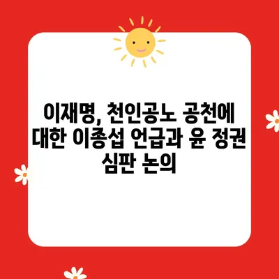 이재명 천인공노 공천 윤 정권에 대한 심판 이해찬이 이종섭을 언급 이재명과 이해찬의 발언을 통해 윤 정권에 대한 심판과 공천 문제를 깊이 있게 분석합니다. 정치적 맥락과 … 더보기