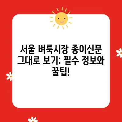 서울 벼룩시장 종이신문 그대로 보기: 필수 정보와 꿀팁!