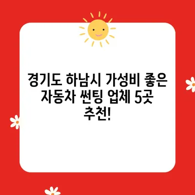 경기도 하남시 가성비 좋은 자동차 썬팅 업체 5곳 추천!